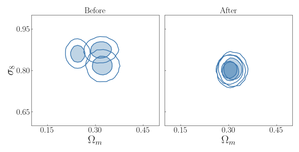 Model misspecification is common when analyzing real-world data, and its impact can be particularly severe when using machine learning–based approaches such as simulation-based inference. In our new work, led by my former intern Sébastien Pierre, we address this issue by developing a simple and effective strategy to stabilize inference and better exploit our data when observations fall outside the training distribution. Applied to galaxy clustering analyses, our method significantly improves robustness across models while preserving most of the available information. Check out our preprint!